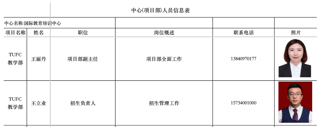 TUFC教学部人员信息