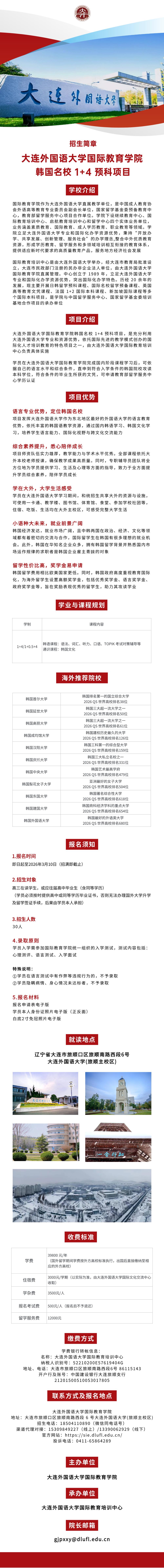 韩国名校1+4预科项目招生简章
